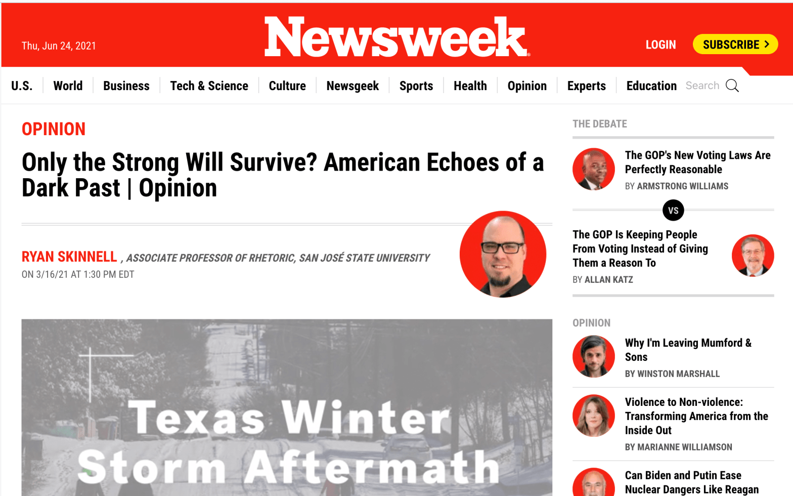 Newsweek: Only the Strong Will Survive? American Echoes of a Dark Past (Mar. 16, 2021)