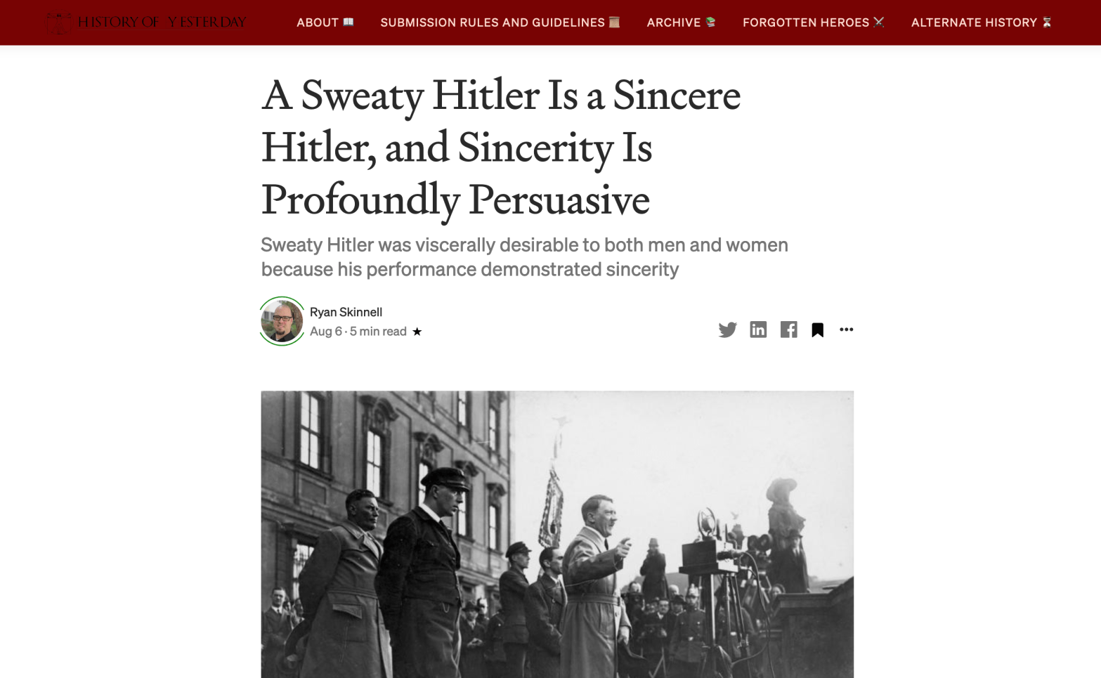 History of Yesterday: A Sweaty Hitler Is a Sincere Hitler, and Sincerity Is Profoundly Persuasive (Aug. 6, 2021)
