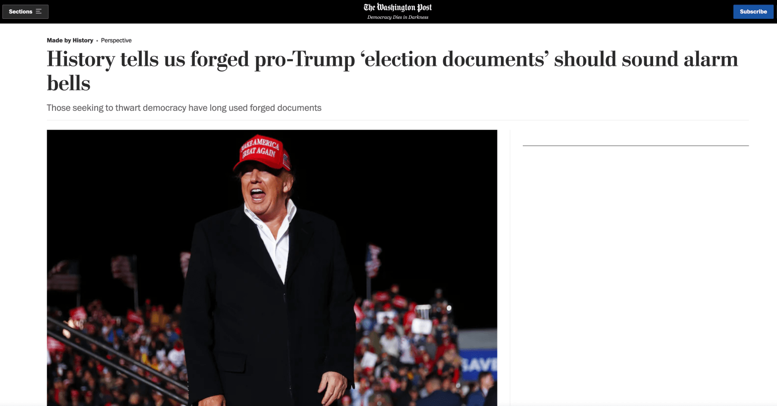 Washington Post: History Tells Us Forged Pro-Trump ‘Election Documents’ Should Sound Alarm Bells (Jan. 18, 2022)
