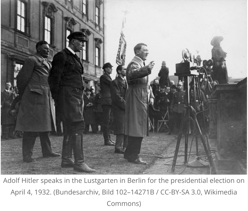 (image: Hitler speaking at a rally, from National Archives and Records Administration)