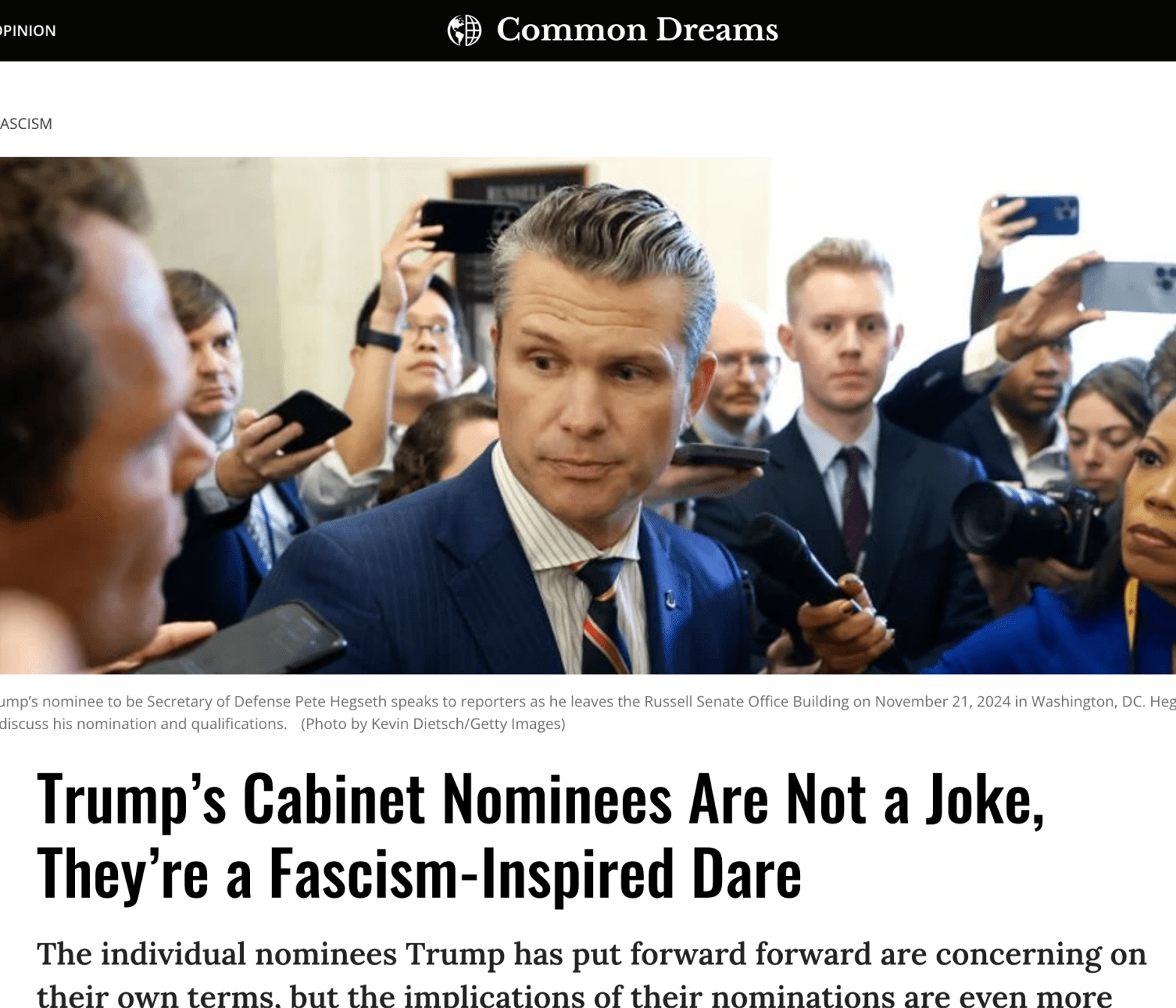 As a professor of rhetoric who studies Nazism, fascism, and demagoguery, I’ve watched Trump’s cabinet picks with mounting unease. The majority of them are so egregiously unfit for the offices they’re nominated to run, it seems like a perverse joke. Read the rest at: https://www.commondreams.org/opinion/trump-cabinet-fascism